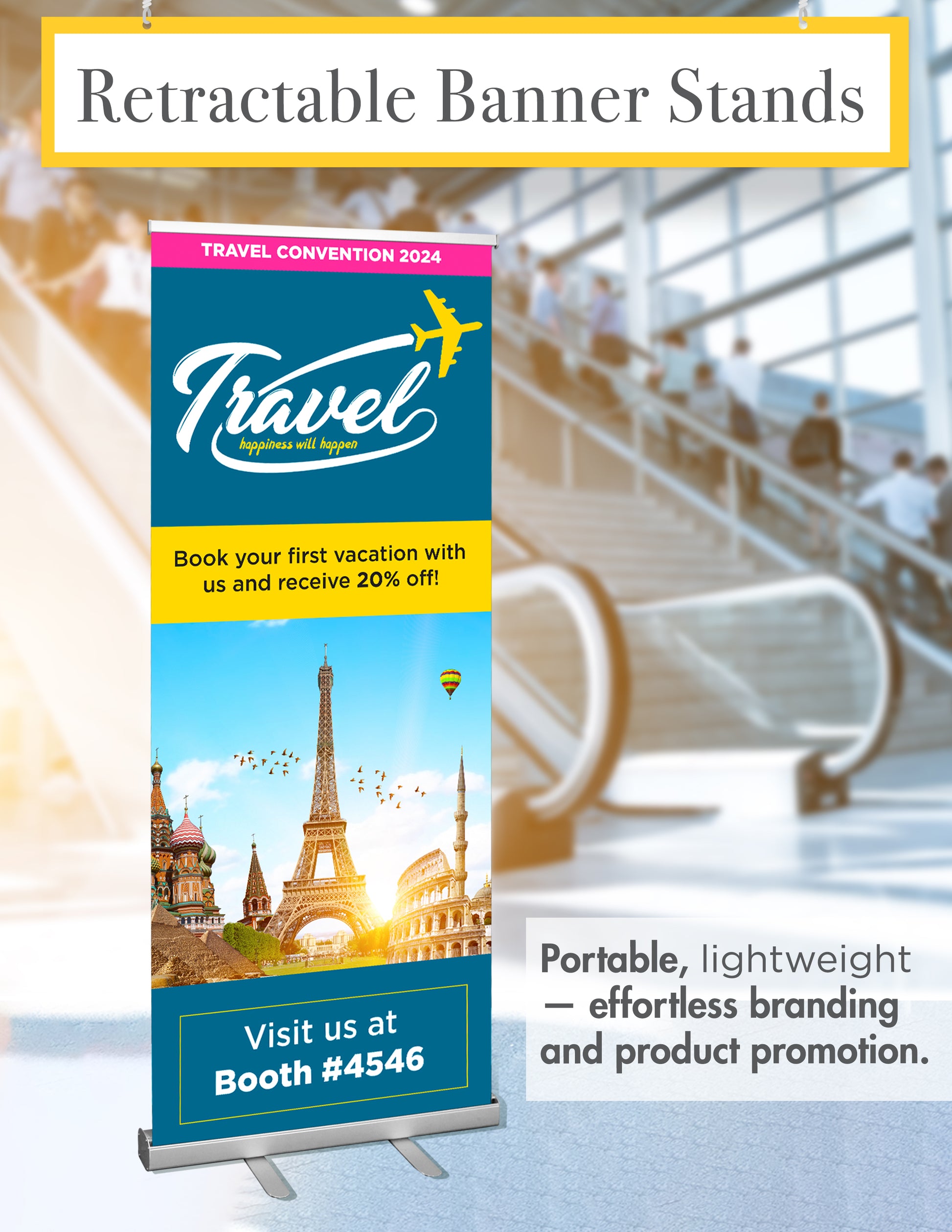 Elevate your brand visibility effortlessly with our Retractable banner. Designed for quick setup and portability, it offers a sleek, professional display that captures attention anywhere. Its durable construction ensures lasting use, making it ideal for trade shows, events, or retail spaces. Showcase your message with impact and convenience wherever you go.